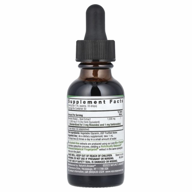 - Standardisert for 3 mg rosaviner, 1 mg salidrosider